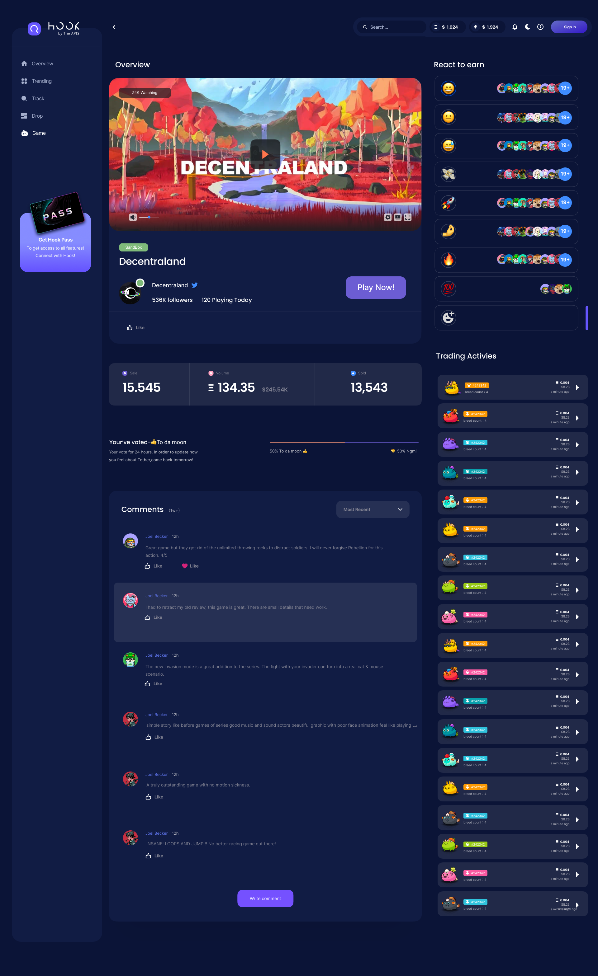 Game. Users can explore different games, see their stats, and other users’ reviews.